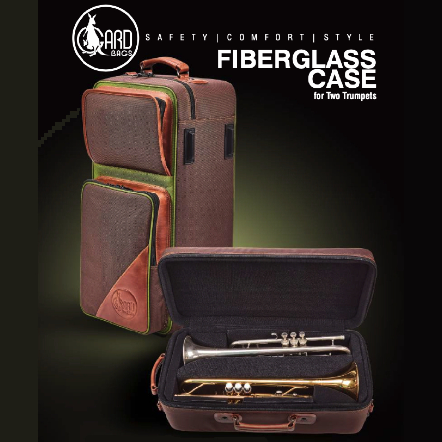 Gard Elite Fibreglass Double Trumpet Case – Synthetic Brown with Tan Leather Trim and Green Synthetic Highlights