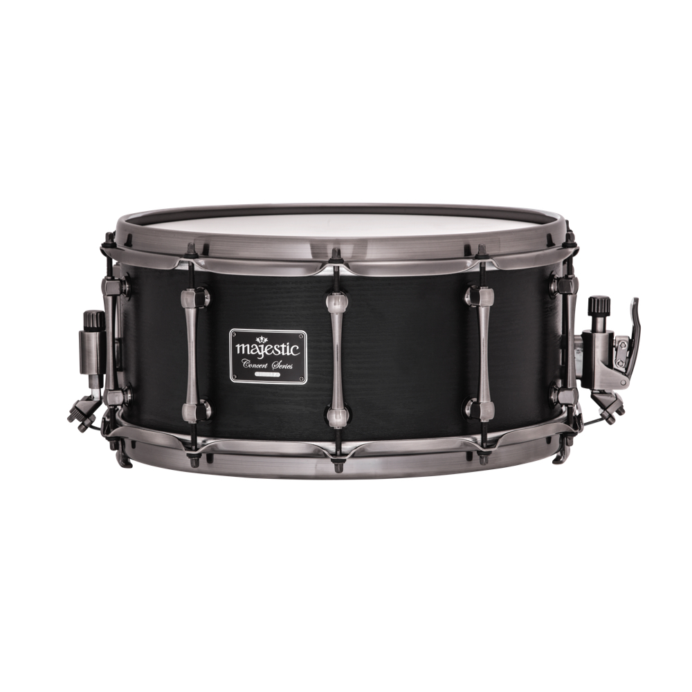 Majestic Concert Black Series MACS1465MA Snare Drum – Size: 14″ x 6.5″, Maple, Black nickel hardware fittings, Nightwood covering shell, Remo Renaissance Ambassador Batter Head, Piston-Action Strainer, Opt. stand.