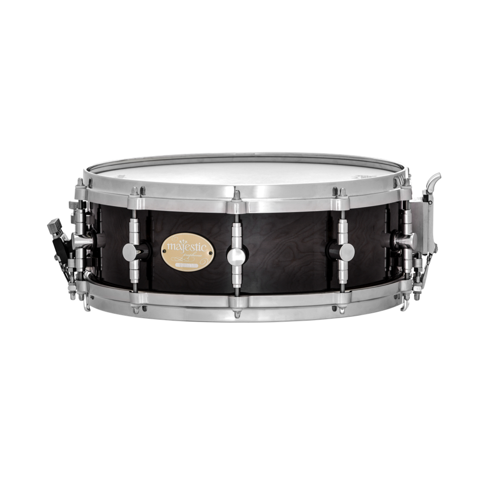 Majestic Prophonic Series MAPS1450MB Snare Drum – Size: 14″ x 5″, Thick Maple, Chrome hardware fittings, Black Dawn Burl Lacquer shell finish, Remo Renaissance Ambassador Batter Head, Multi-link strainer system, 4 types pre-set cables, Opt cable change, Opt. stand.